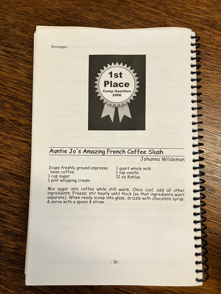 Having recently dug up the old cookbooks, my Mother gave me a copy of the last version compiled in 2014. By this stage of the game the family referred to our family gatherings as “Camp Hamilton”.